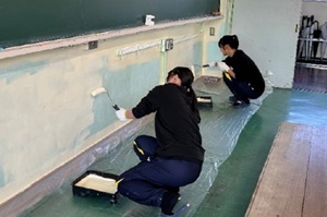 教室の壁塗りを実施(R8.3.17)